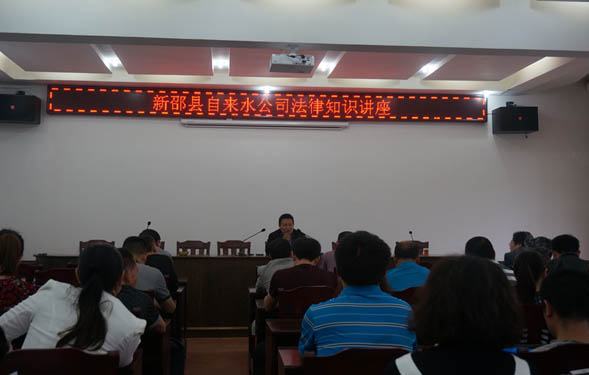 为了让干部职工提高法律意识,争做知法、懂法、守法的好公民。5月7日公司法律顾问石继兴在二楼大会议室举办了法律知识讲座,主要针对《城市供水条例》等法律法规在企业管理中的实际应用进行解读,公司全体人员与会参加。 石律师首先从如何树立法制理念、依法治企的意识谈起,通过举例告诫我们要依法做事,依法做人;还重点阐述了《城市供水条例》相关内容,让大家明白如何加强城市供水管理,保证安全供水、计划用水和节约用水。