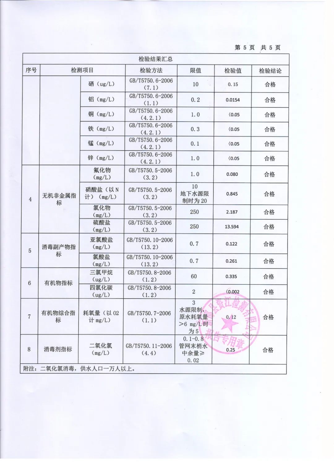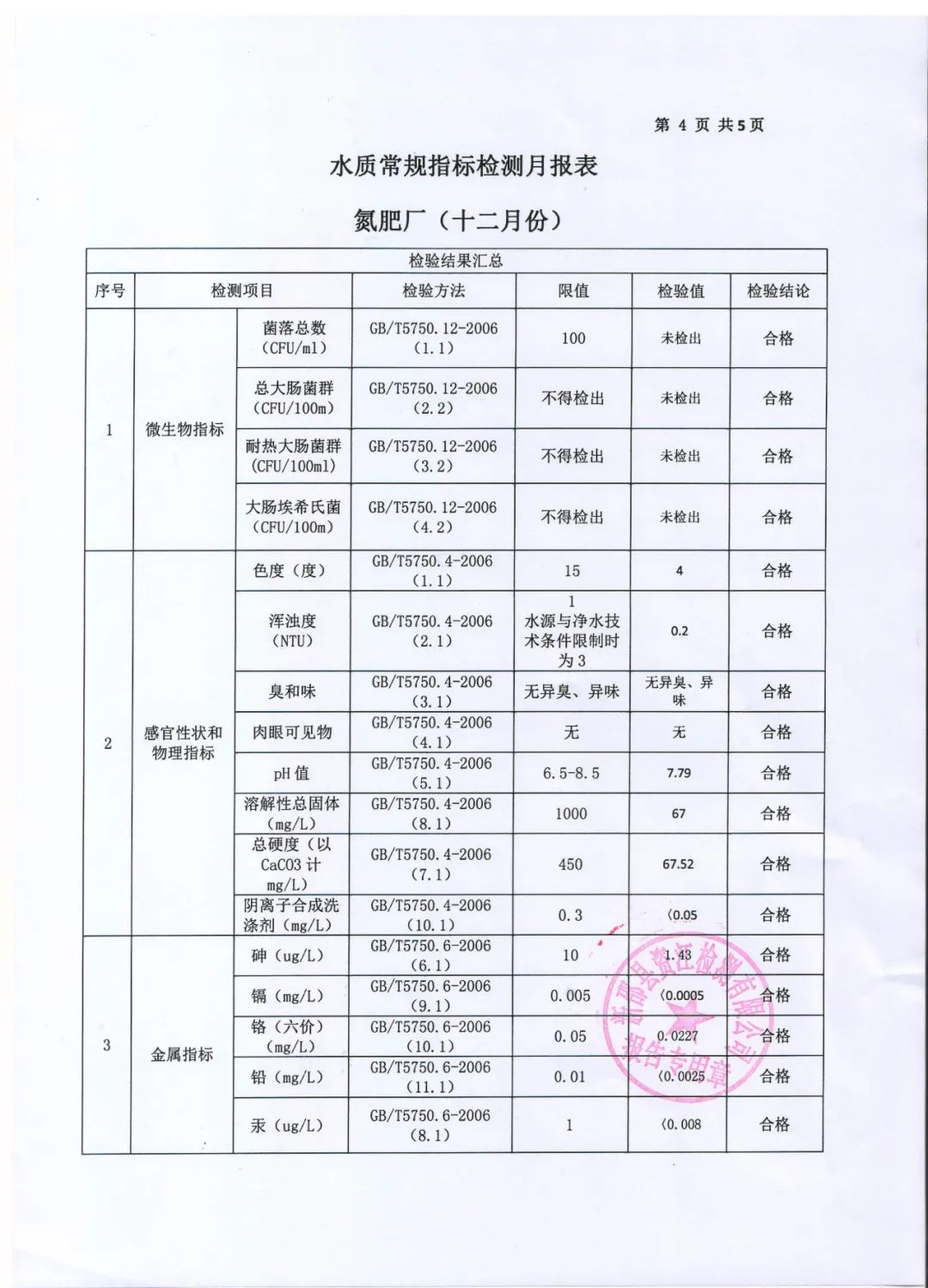 2021年12月水质月报表